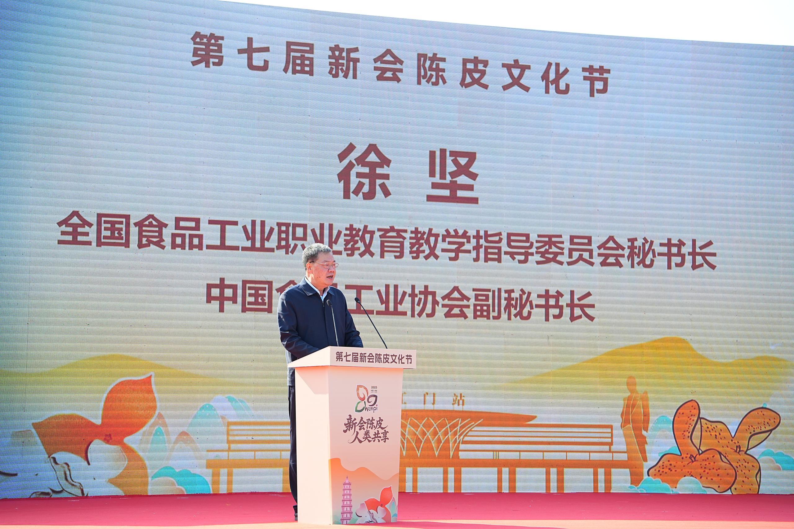 全国食品工业职业教育教学指导委员会秘书长、中国食品工业协会副秘书长徐坚应邀出席本届文化节开幕式并做主题发言,他表示,新会作为全国陈皮产业的关键产区,近年来,在农产品科技培育、种植规模拓展、陈化工艺改进以及产业服务配套建设等方面均取得显著成效,目前已逐步搭建起较为完备的产业基础架构。