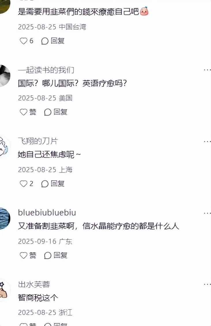 因为她之前也有过一系列的黑历史,卖水晶收割过智商税,直播带货败坏了不少路人缘。