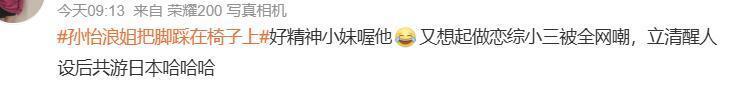 孙怡率先因为一个真性情热搜翻车,她在选手席一直小动作不断,一会儿坐地上,一会儿把腿放椅子上,就没像其他选手一样正常落座。
