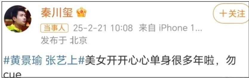 黄景瑜前任看到她上节目,也发了个忧郁语录,疑似是拿这件事出来内涵她。