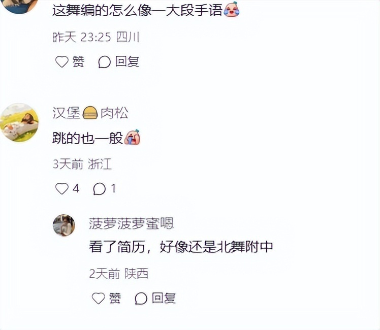 她本是学舞蹈出身,但这段舞蹈看不出一点功底,唱的也难听,震惊了很多看热闹的网友。