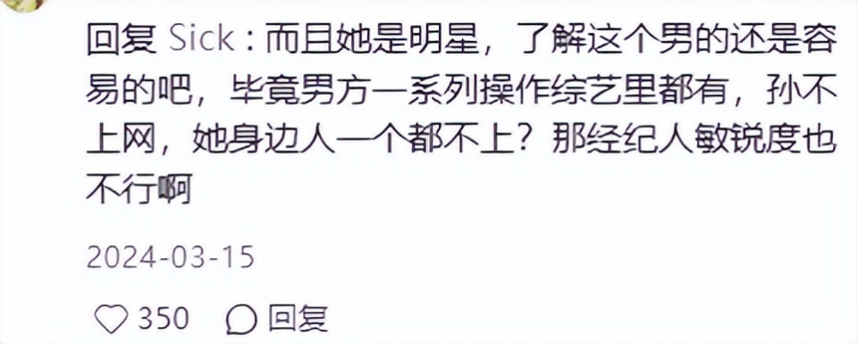 她的经纪人辟谣过,但辟谣得不是很强硬,网友都不接受,觉得是在糊弄大家。